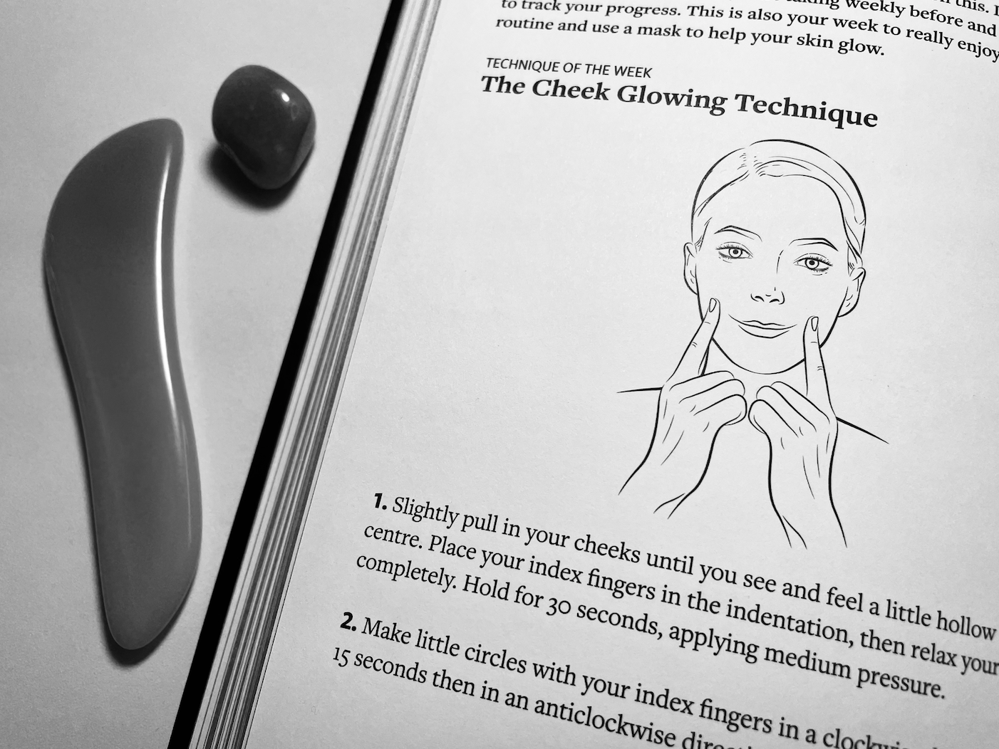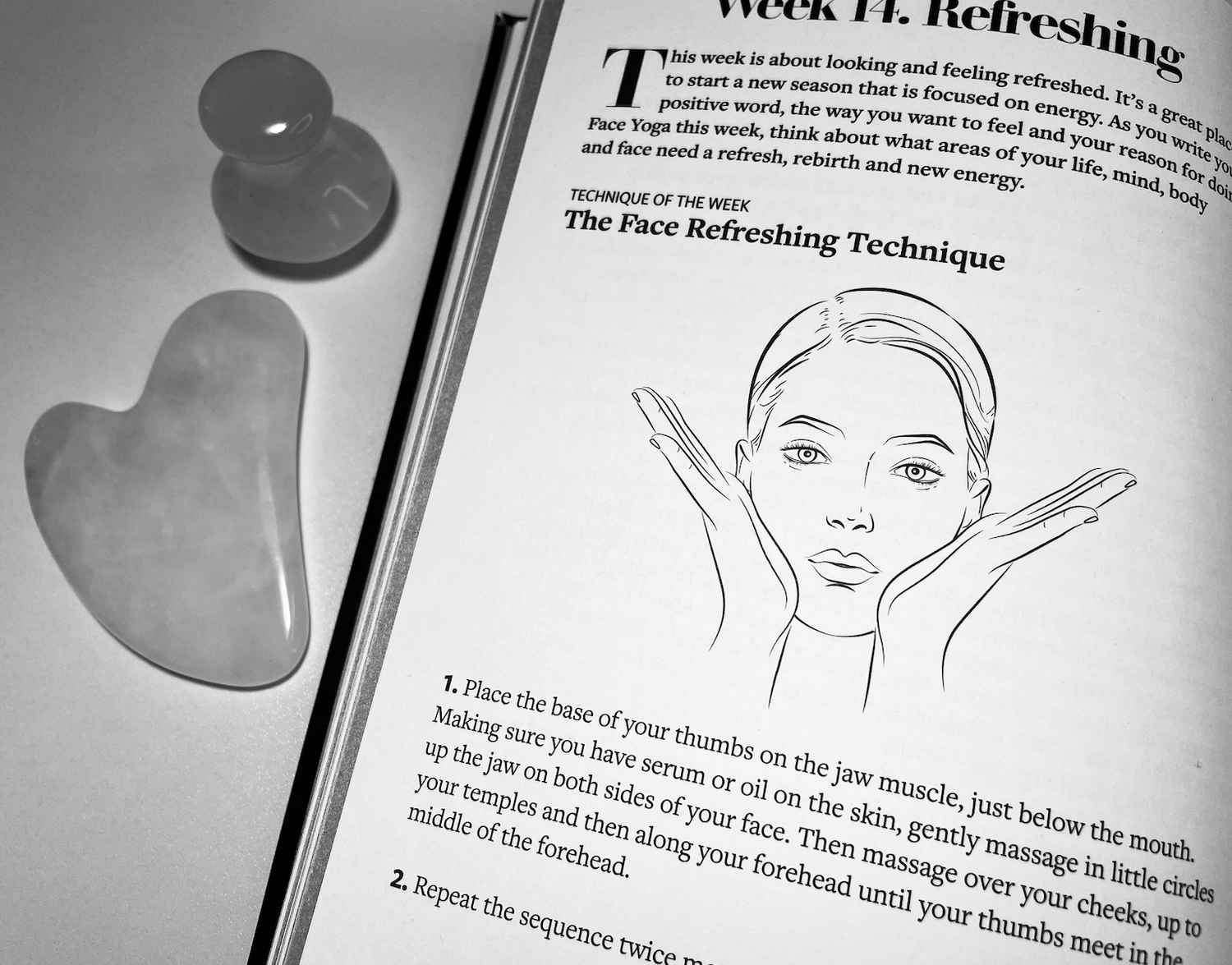 In the image the book "The Face Yoga Journal" by Danielle Collins.