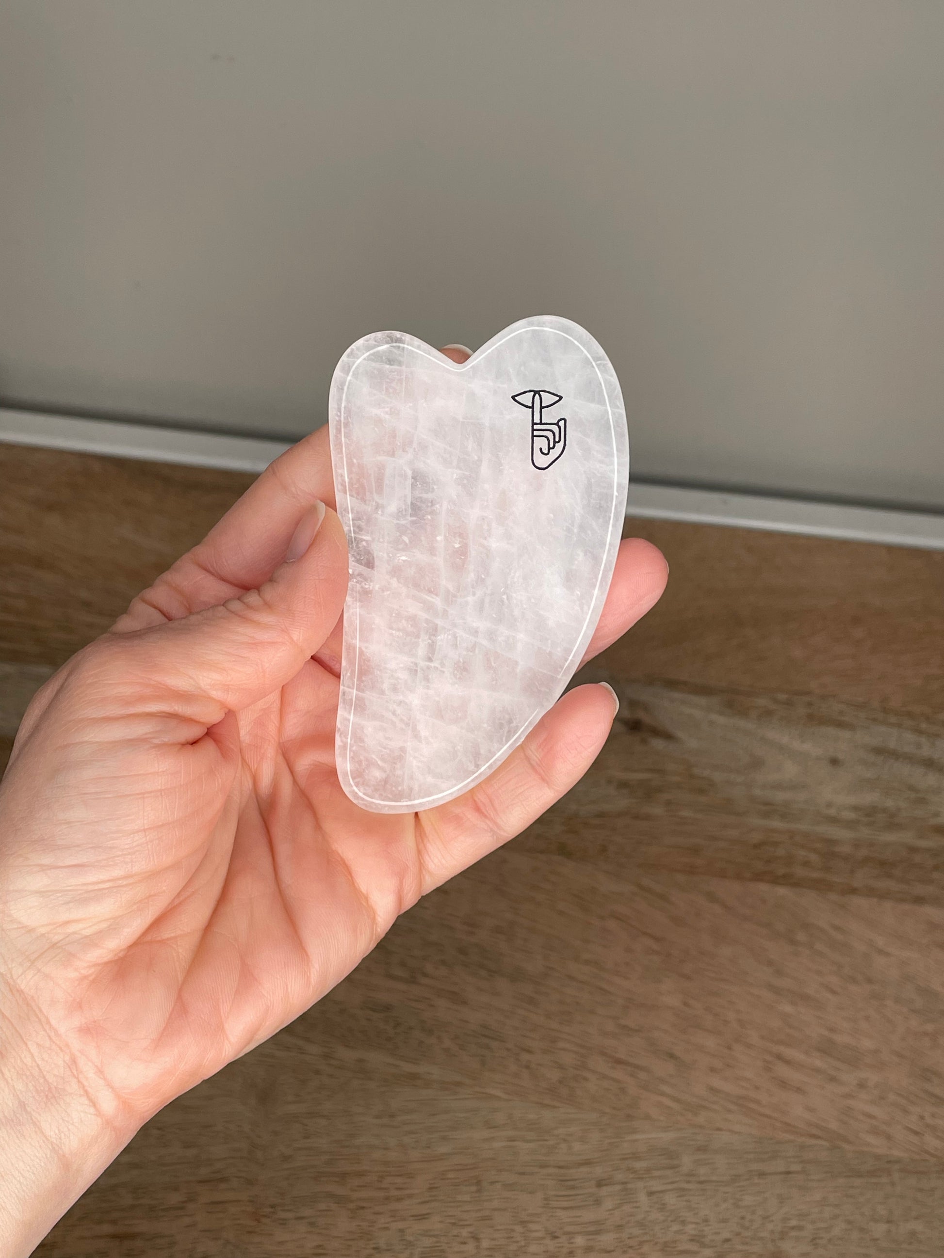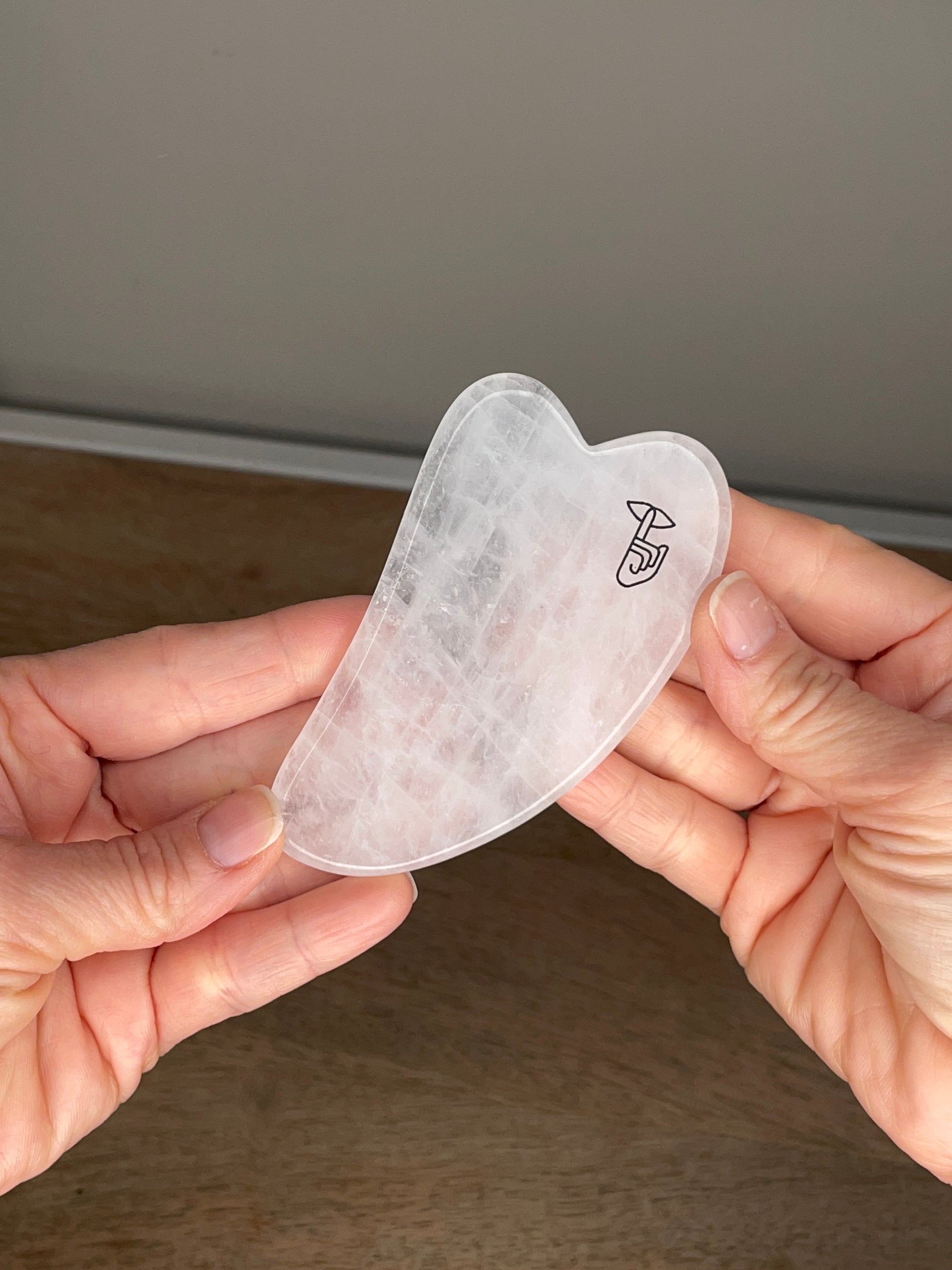 Non un Gua Sha qualsiasi, bensì il prezioso Gua Sha di Quarzo bianco firmato Face Yoga Secret.